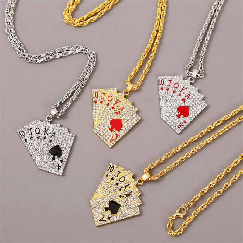 Hip Hop Jewelry Women Men Statement Enamel Playing Cards Pendants Necklaces Hip Hop Jewelry Fashion Gold Silver Color Necklace